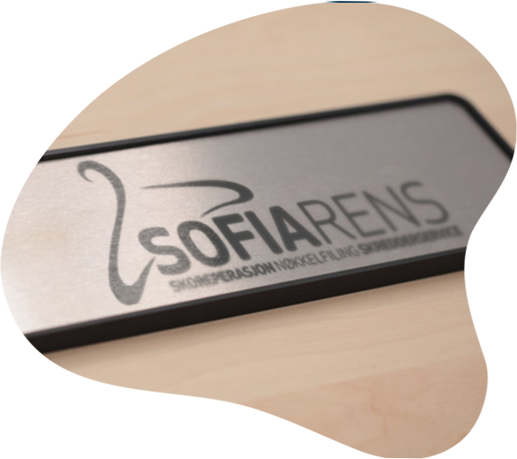 Dersom du ønsker å få navnet ditt skrevet på døren din i en estetisk og lesbar stil, tilbyr Sofia Rens AS også denne tjenesten til deg. Besøker du vår bedrift kan du velge det beste skiltet for deg og du vil i løpet av kort tid motta skiltet, klart til bruk.